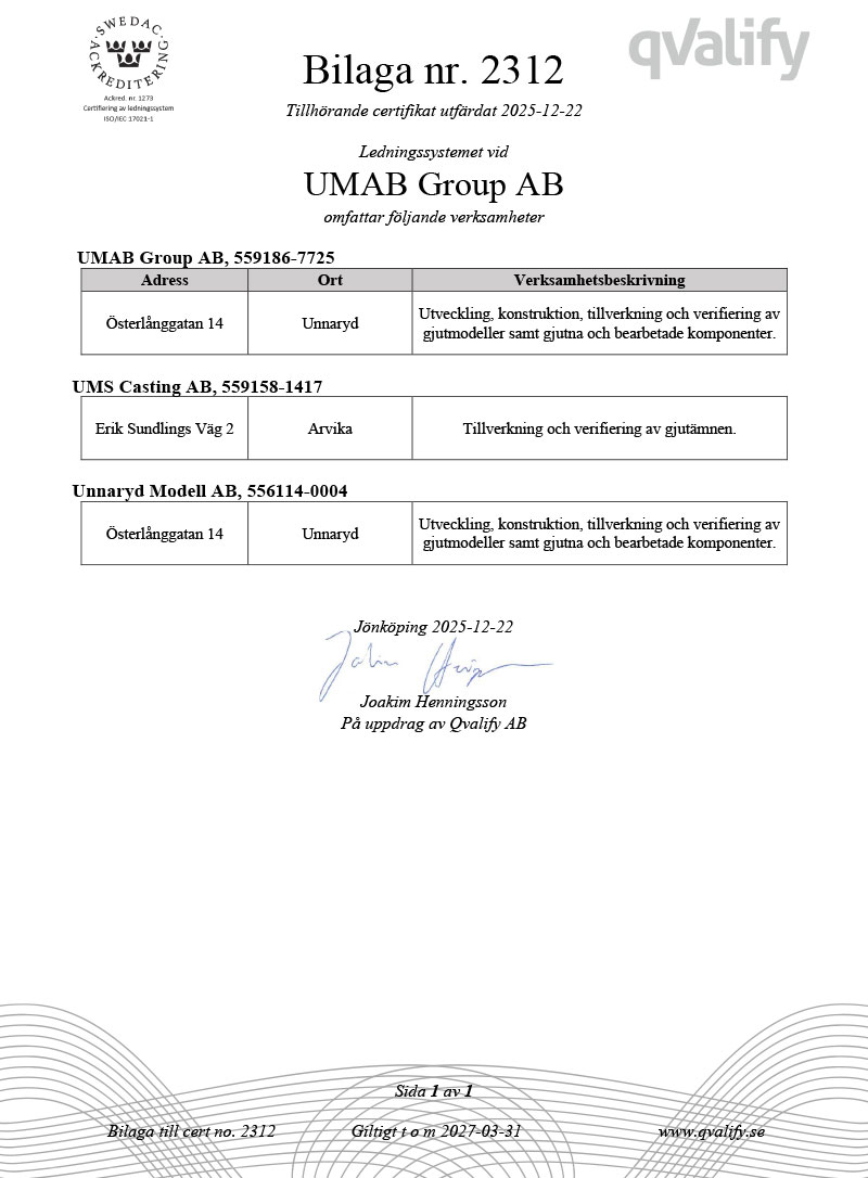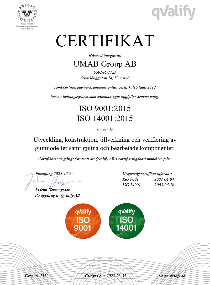 CERTIFIKAT Producerat med ansvar Vårt arbete med kvalitet och miljö styrs av ledningssystem enligt ISO 9001 och ISO 14001.